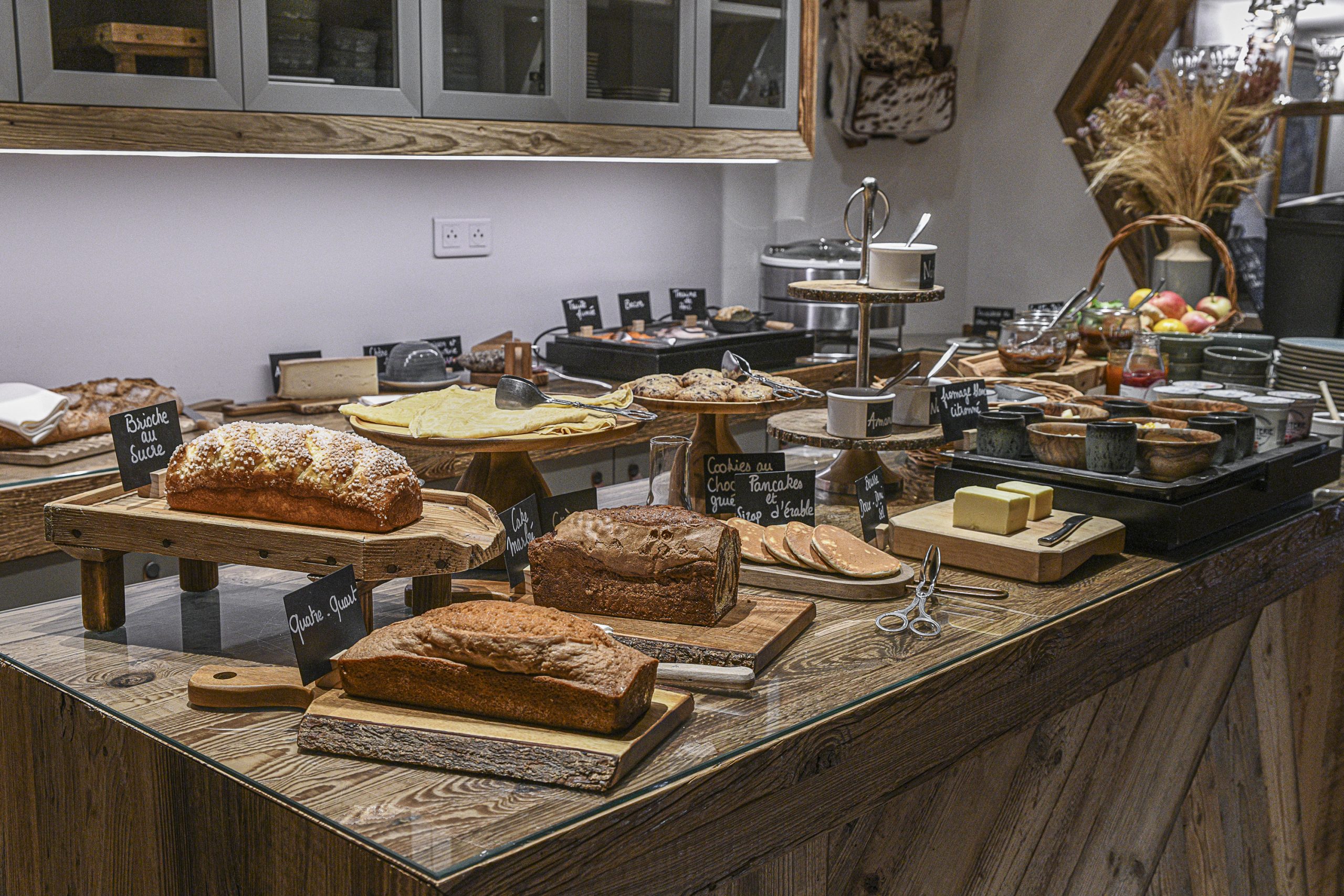 Chez nous, pas de buffet géant, mais une sélection soignée de produits frais, locaux, de saison et préparés maison ! Si vous avez une envie particulière sur un ou plusieurs de nos produits, n’hésitez pas à prévenir notre équipe en salle qui se fera une joie de complémenter votre petit-déjeuner.